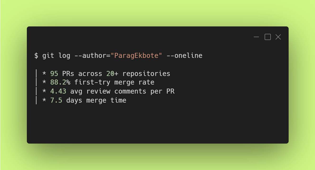 The real lesson from 95 PRs isn’t about productivity, it’s about understanding the needs of project maintainers, resolving long-standing issues that require attention and pursuing effective communication. At scale, open-source contribution becomes a feedback loop. You learn project-specific patterns. This leads to internalize quality signals and leads to increase in merged rates and iteration cycles decrease. It also leading to compounding of trust and access to interesting problems.